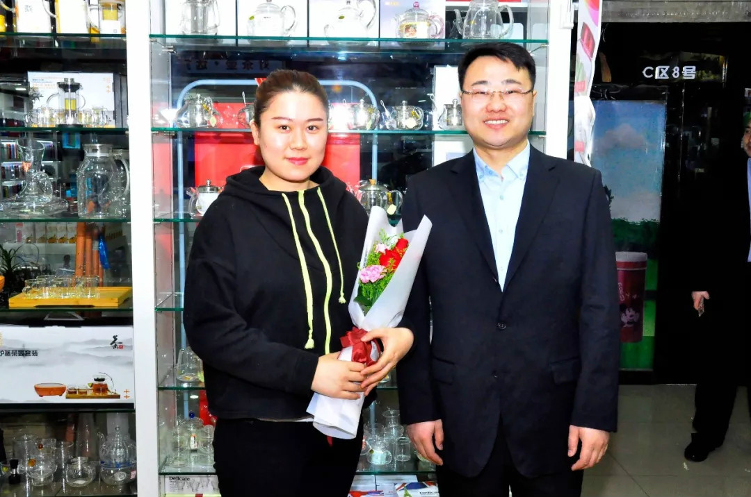 8日上午,太和集團副總經理、太和文化禮品城總經理陳暇和太和百貨日化城常務副總經理尚林攜雙城各部門經理及部分管理人員向雙城的女經銷商們送去了節日的問候與祝福。