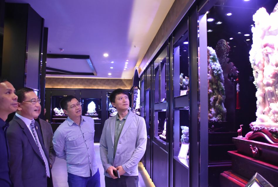 3月14日下午,中國珠寶玉石首飾行業(yè)協(xié)會秘書長畢立君一行在四會市玉器產(chǎn)業(yè)辦主任李漢洲和四會市珠寶玉石首飾行業(yè)協(xié)會會長嚴(yán)文樂等人的陪同下蒞臨中國四會玉器博覽城參觀考察。太和集團地產(chǎn)運營中心總經(jīng)理趙博超、太和集團商業(yè)運營中心總經(jīng)理楊遇春、玉博城常務(wù)副總經(jīng)理臧單單等陪同參觀,對各級領(lǐng)導(dǎo)蒞臨玉博城參觀考察表示熱烈歡迎,并就商城經(jīng)營模式、發(fā)展戰(zhàn)略等做了詳細(xì)介紹。