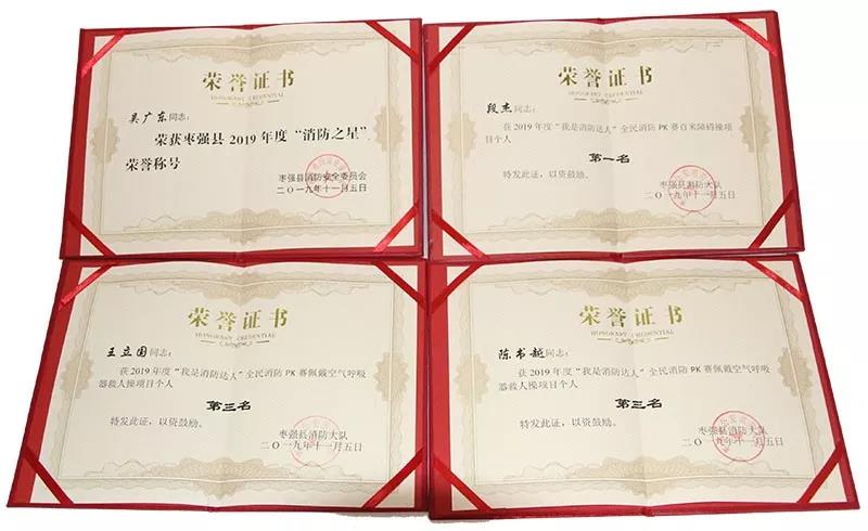 2019年11月5日上午,在棗強縣消防大隊舉辦的“119”消防宣傳月活動啟動儀式上,中國·大營國際皮草交易中心被棗強縣消防安全委員會授予2019年度“消防之星”榮譽稱號;中國·大營國際皮草交易中心微型消防站榮獲棗強縣消防大隊授予的“我是消防達人”全民消防PK賽團體一等獎;同時,大營商業運營公司保安部經理吳越被棗強縣消防安全委員會授予個人2019年度“消防之星”榮譽,微型消防站隊員段杰、王立國、陳書越分別榮獲棗強縣消防大隊頒發的個人消防技能比賽第一名和第三名的成績證書。